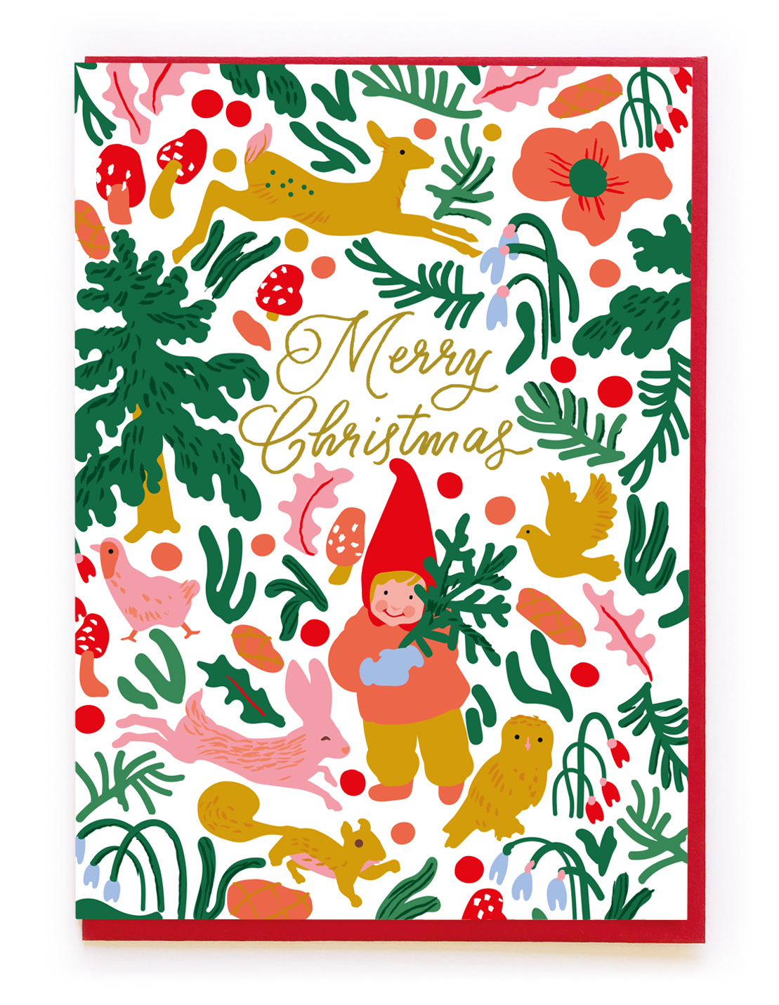 Christmas forest, ‘Merry Christmas’ gold foil message. Blank inside and supplied with a bright red envelope.