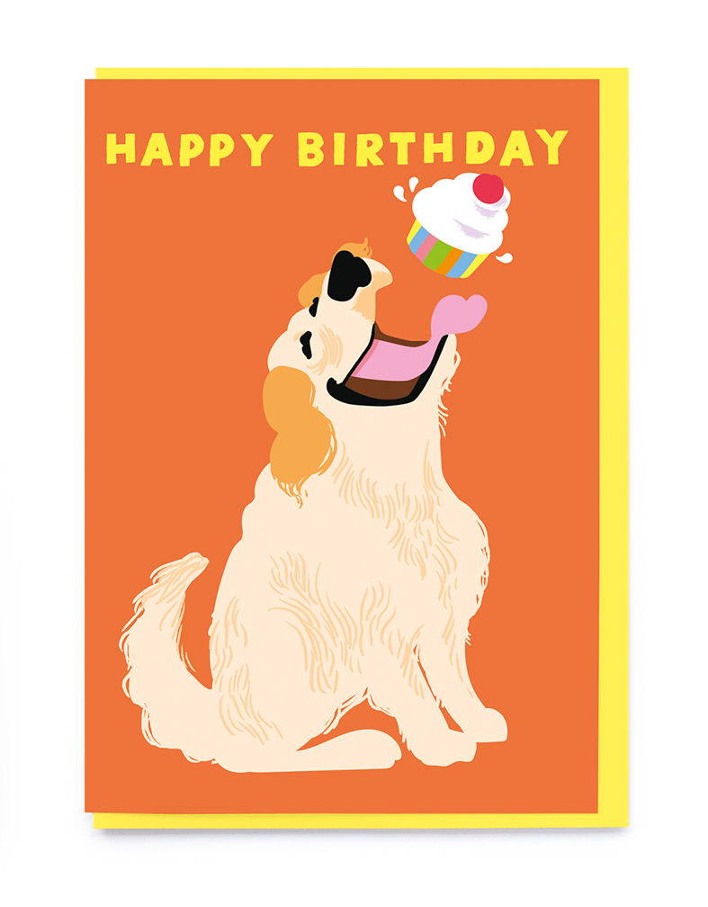 Golden retriever ‘happy birthday’ message. Blank inside and supplied with a yellow envelope.
