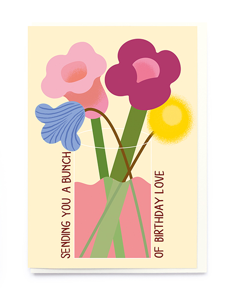 Bunch of flowers in water. Blank inside and supplied with an off-white envelope.