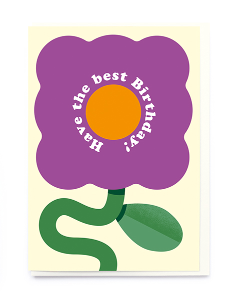 Purple flower. Blank inside and supplied with an off-white envelope.