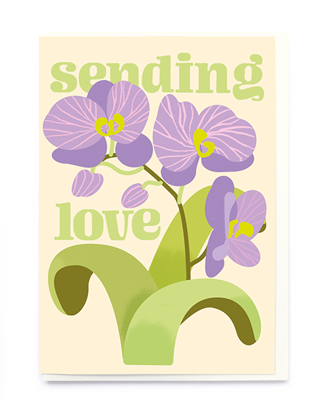 Purple orchid. Blank inside and supplied with an off-white envelope.